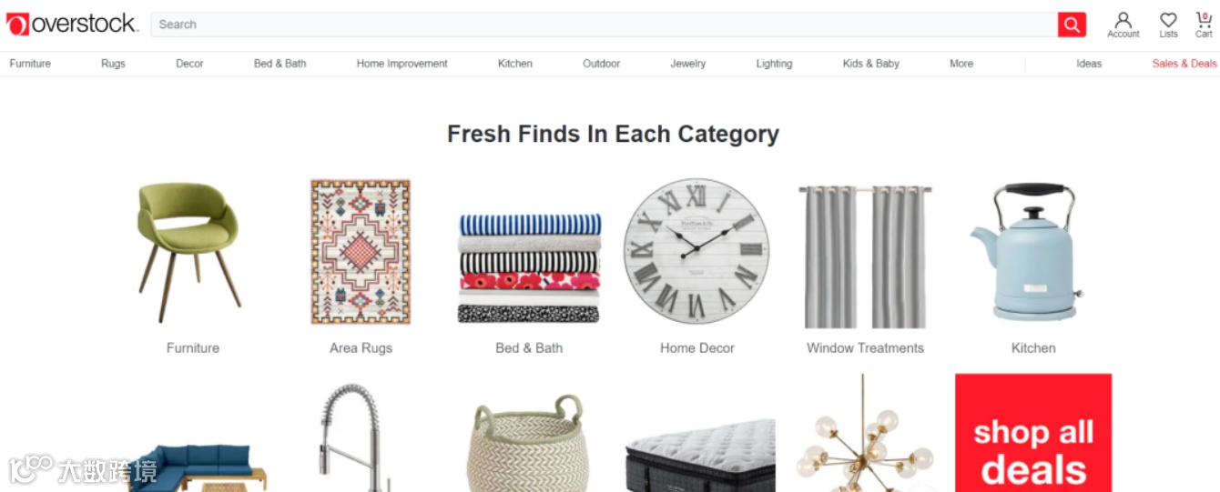 但随着Overstock近些年来在产品定位上的不断开发与创新,它现在经营的品类范围已经数不胜数。例如:家居用品,床上用品,珠宝手表,3C数码产品,健康美容产品,户外运动以服装鞋帽等等。有以上经营产品的卖家可以考虑入驻Overstock。