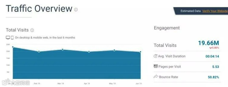 我们来看看网站流量情况 19.66m/月,91%来自北美!