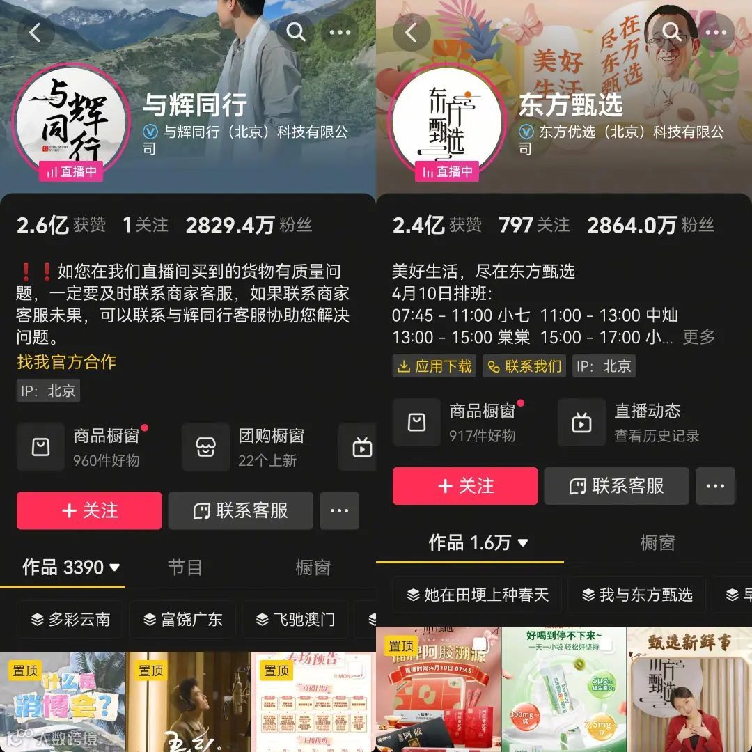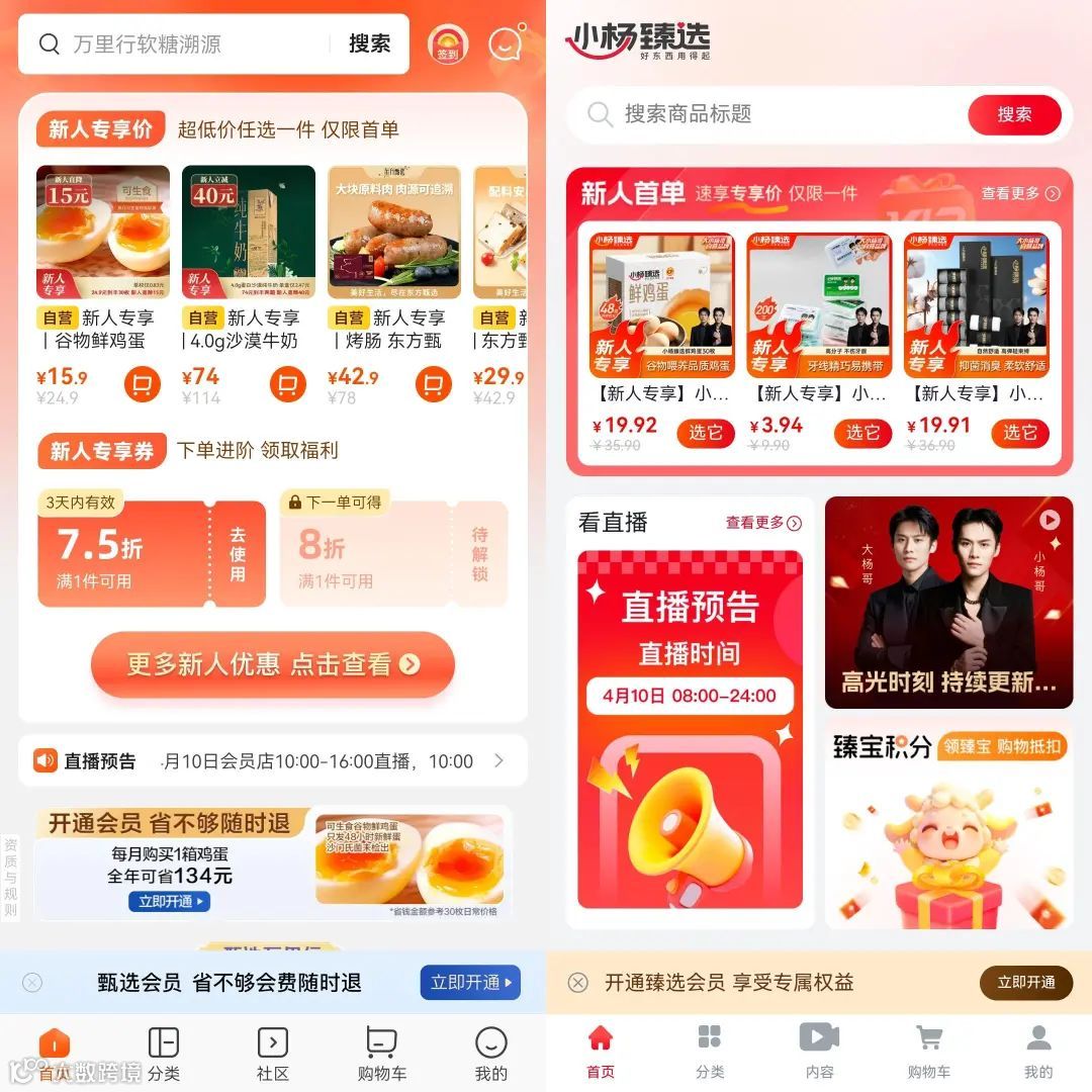 东方甄选APP首页和小杨臻选APP首页