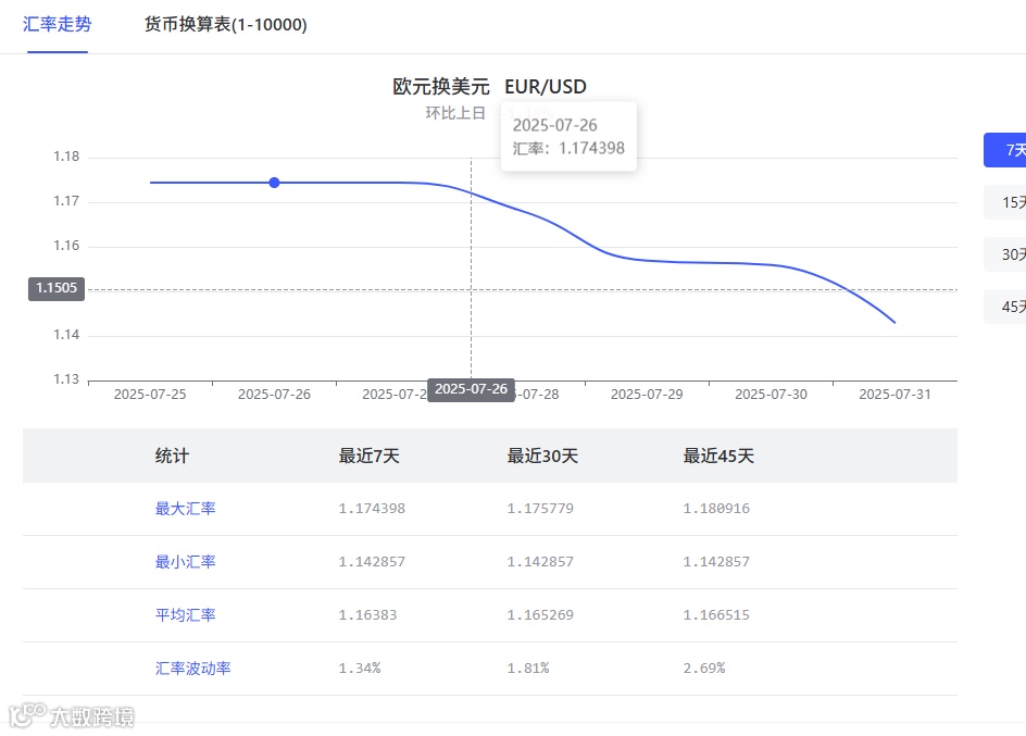 利润波动:如果欧元兑美元汇率下跌,意味着跨境电商从欧洲市场获得的美元收入会减少,这可能导致利润缩减。