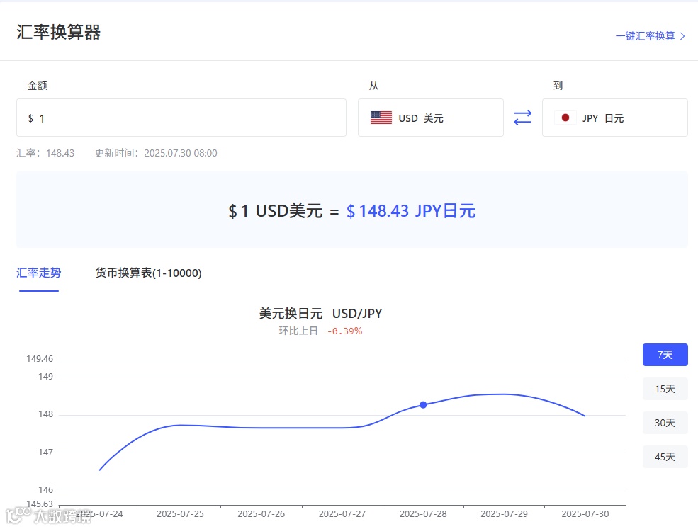 多币种支持:除了美元兑日元,工具支持多达150多种货币的汇率查询,包括欧元、英镑、澳元等主要货币的即时换算。