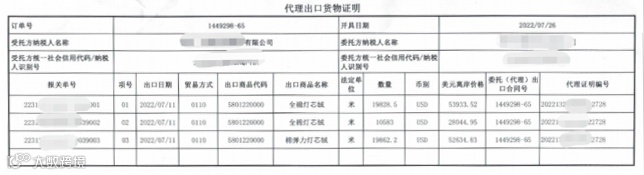 如果是委托出口的货物还需要取得《代理出口货物证明》,《代理出口货物证明》由受托方开具给委托方: