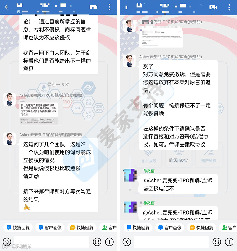 麦家支持律师团队和客户并未轻易接受这一提议,再次深入对比了双方的商标与专利,针对品牌方专利瑕疵点,并据此制定了更为有力的谈判策略,据理力争,最终成功说服品牌方接受了0赔偿并撤诉的条件,最终以卖家获得0赔偿并成功撤诉的圆满结果告终。