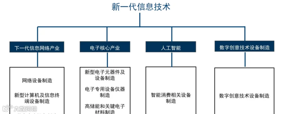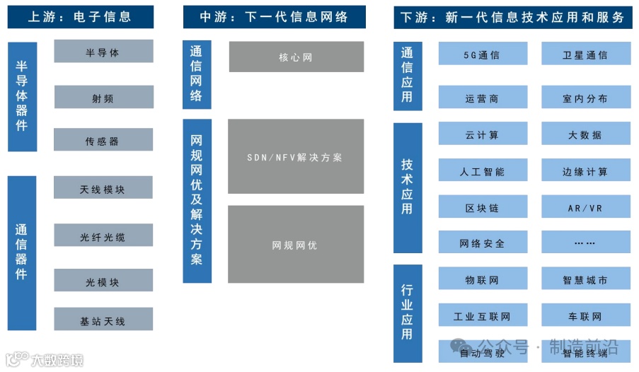 下游:新一代信息技术应用和服务产业,涵盖人工智能、大数据、智慧城市、工业互联网、物联网等多个方面。