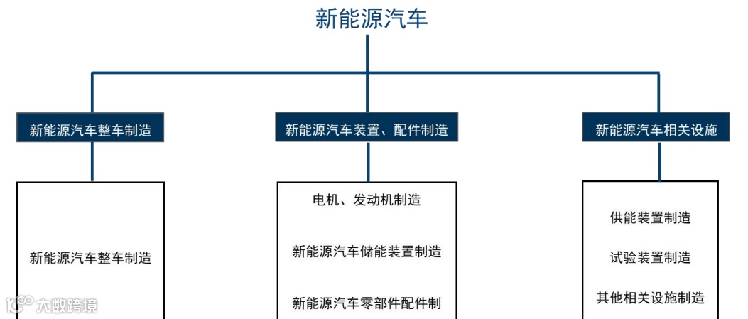 中游:整车制造,包括纯电动汽车、油电混合动力汽车、燃料电池汽车、增程式电动汽车等;