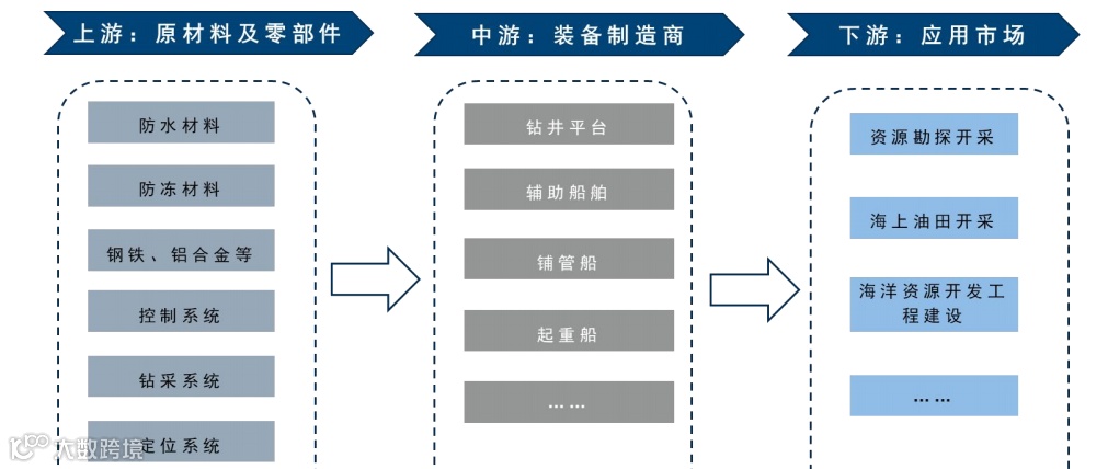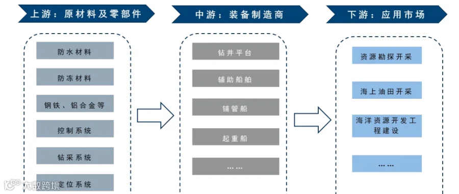 下游:涵盖海洋油气资源勘探开采、海上油田开采、海洋资源开发工程建设等应用市场。
