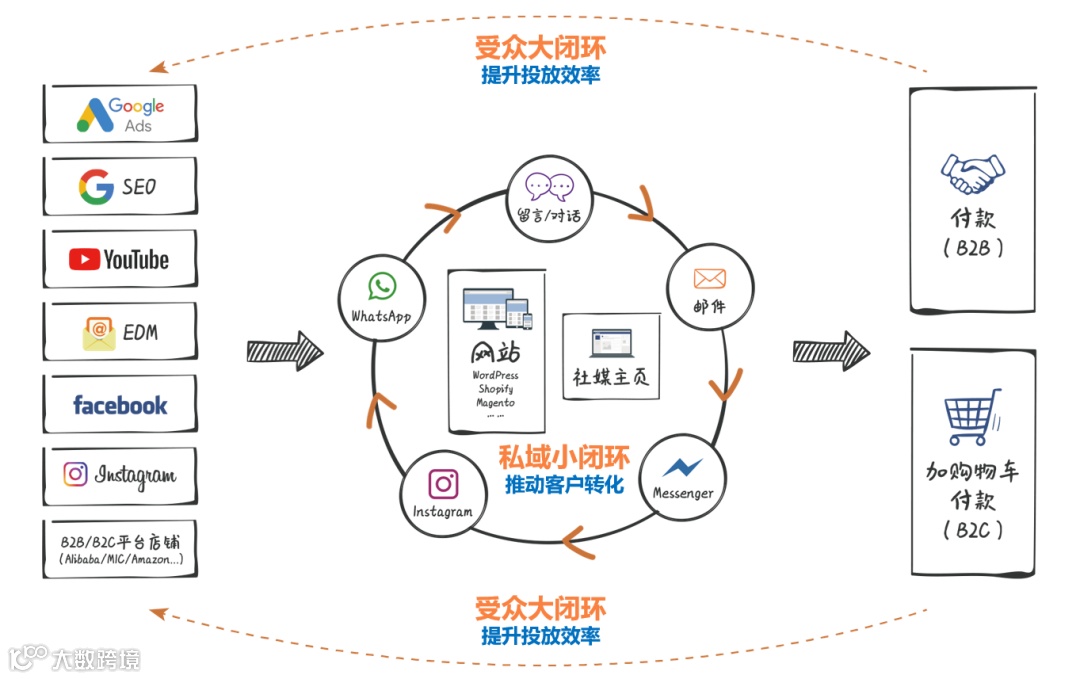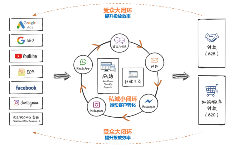 这里有一个误区,很多外贸企业认为我不只是做阿里巴巴国际站,我还做了谷歌、Facebook,这就是在做私域了。