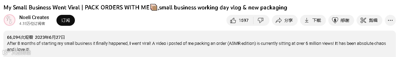 在YouTube上,Noeli同样难掩喜悦之情,表示自己的小生意终于在8个月后成功走红了。