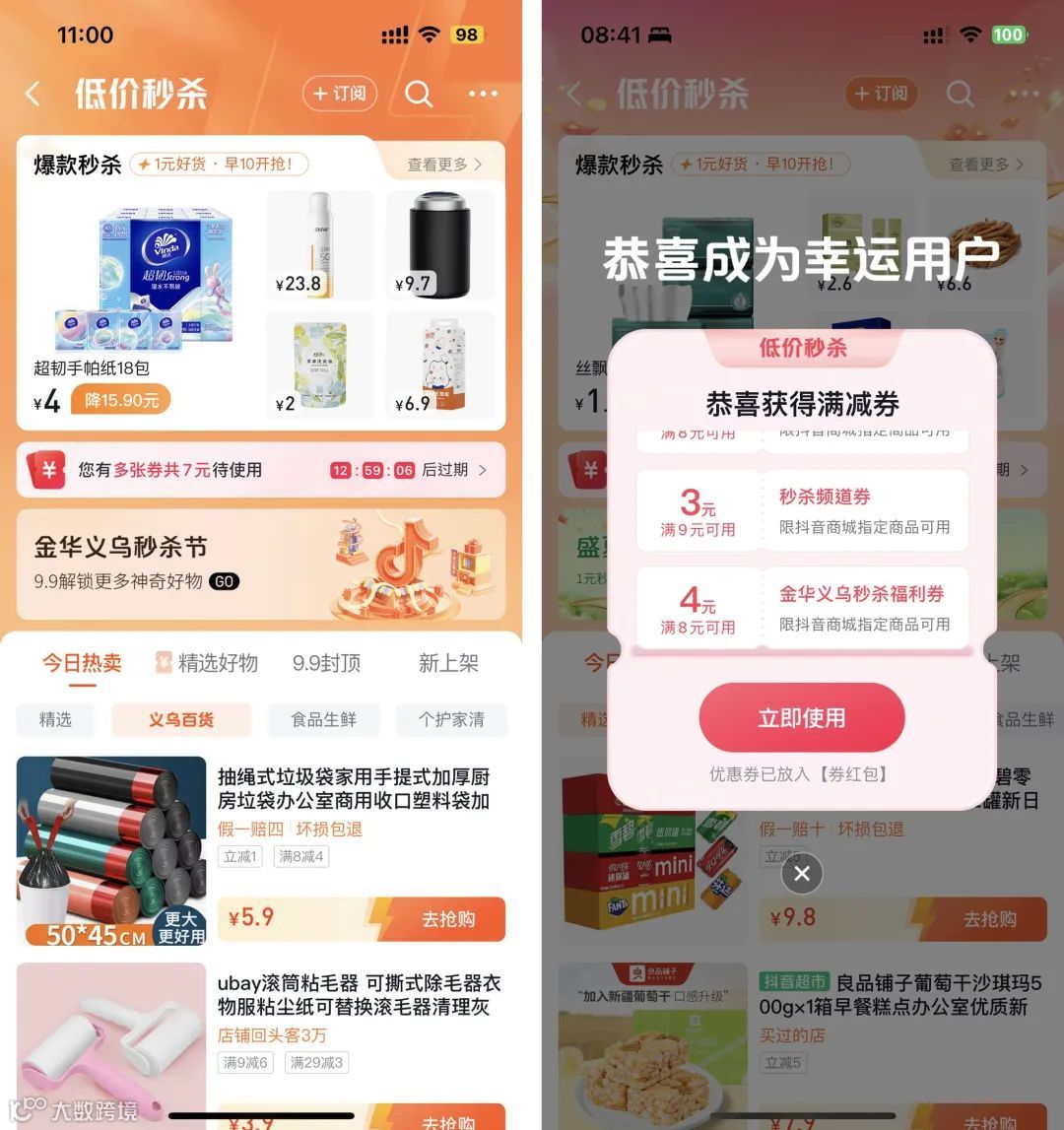 本次金华义乌秒杀节期间,平台积极引导商家完成全场域布局,以最大程度上释放增长潜力,提升销量爆发的确定性。