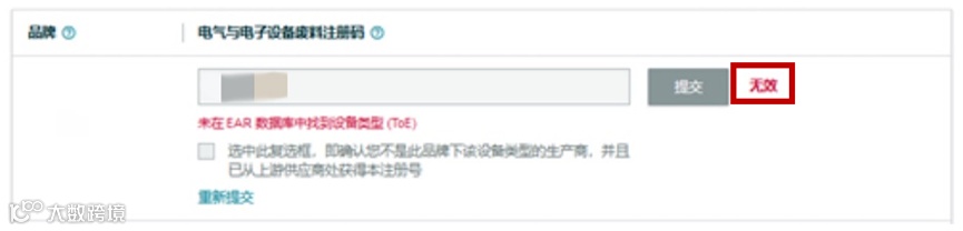 情况二:如果您还未提交WEEE注册号,或者验证结果显示为无效