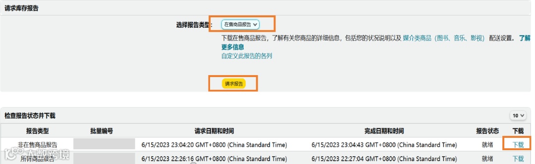 首先打开亚马逊卖家平台,依次点击“数据报告”和“库存报告”,进入“库存报告”页面。在页面顶部的“选择报告类型”下拉菜单中,选择“非在售商品报告”并下载。