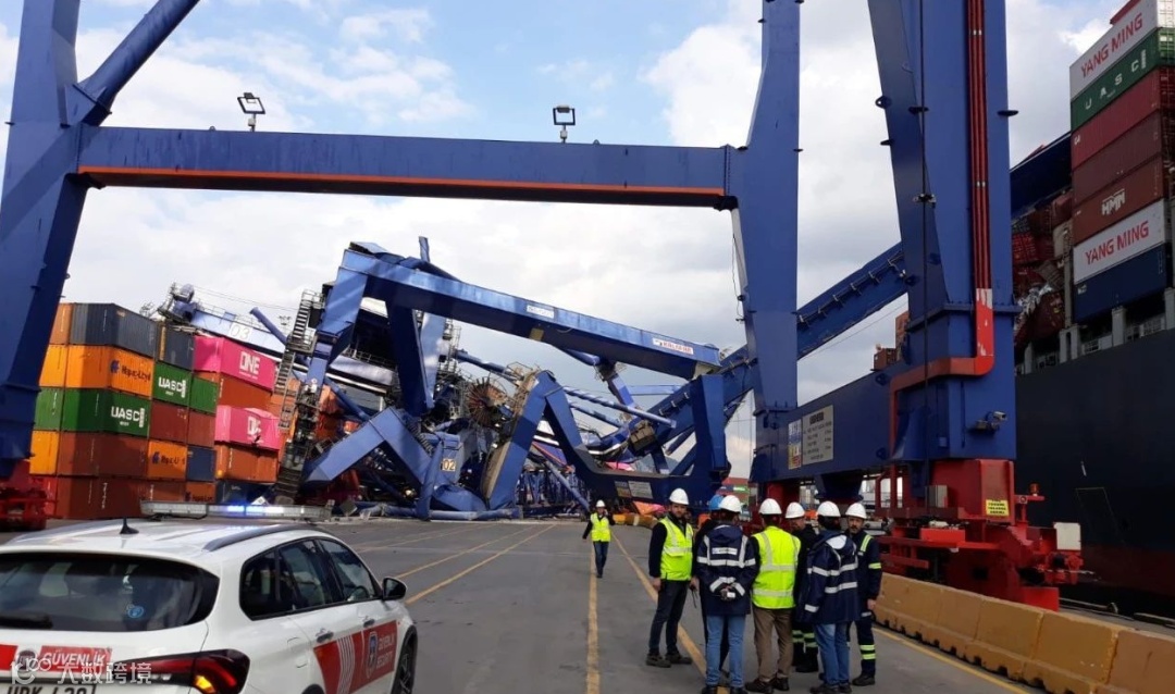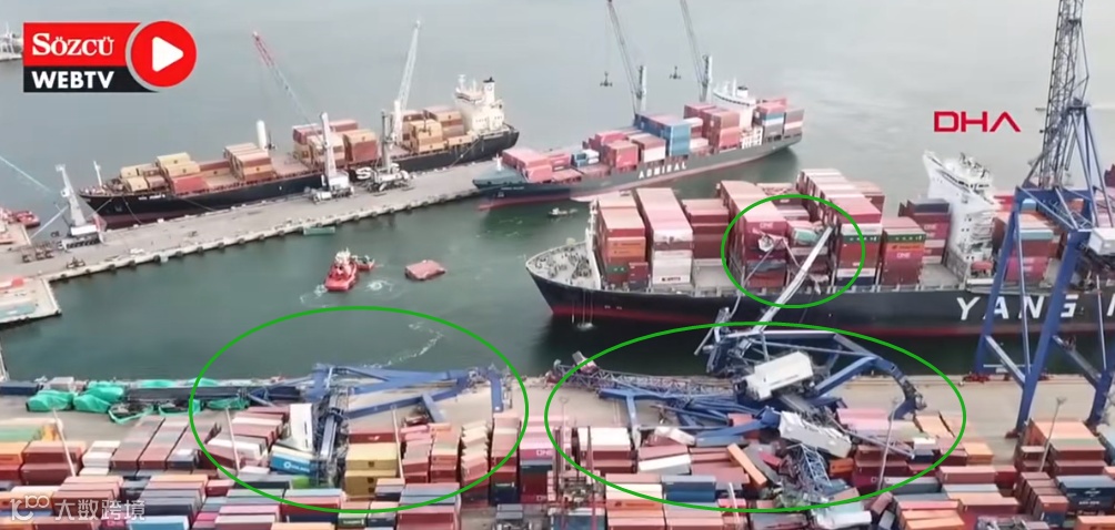 3月16日(当地时间),阳明海运旗下大型集装箱船“YM WITNESS”在靠泊土耳其艾维亚普港(Evyap Port)时发生事故。船舶失控撞向码头起重机,现场数十个集装箱受损,3台码头起重机倒塌受损(每台起重机造价约1200万美元)