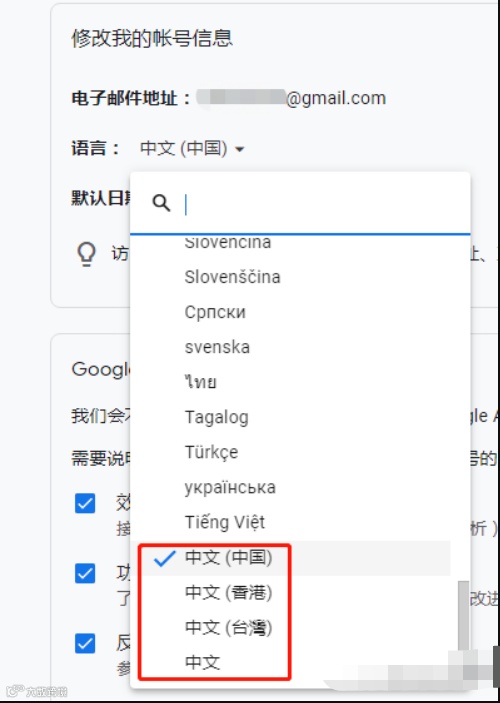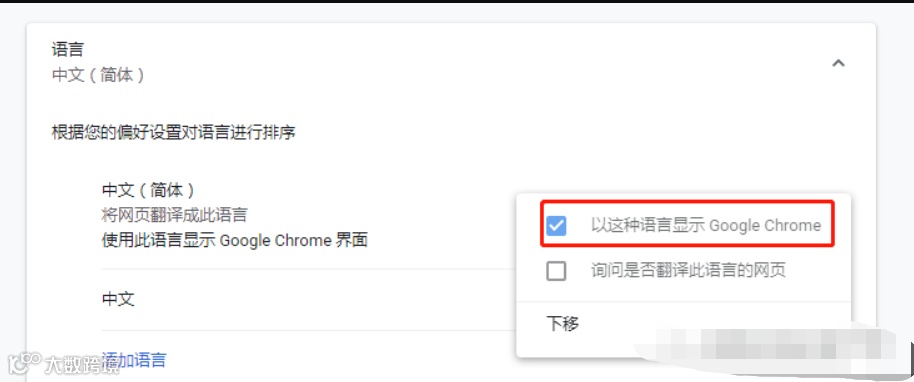 7.勾选以这种语言显示Google Chrome