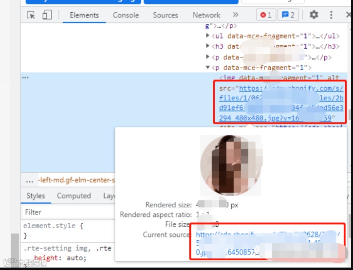 5.鼠标放到图片链接上会弹出图片信息,点击下图其中一个红框的链接进行复制(图片链接是包含图片格式的链接,比如jpg/jpeg/png/gif)