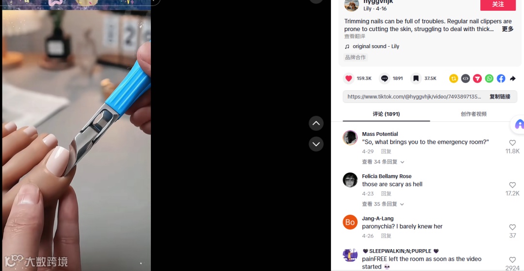 从评论区中可以看出,TikTok上许多用户正在备受修剪指甲的困扰,长指甲勾进皮肤里带给人们太多恐惧,大家都表示需要一个祛除指甲问题的工具。