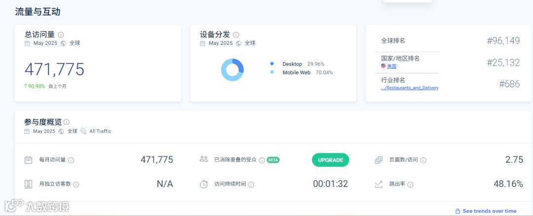 线上渠道主要是以“独立站+亚马逊”为核心。通过官网构建品牌核心认知,沉淀私域客户。similarweb数据显示,2025年5月DREO独立站月均访问量超47万,自然流量占比超70%,品牌词“dreo”搜索热度持续攀升。