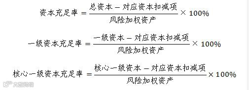资本监管指标包括资本充足率和杠杆率[k]。其中,资本充足率指商业银行持有的符合规定的资本净额与风险加权资产的比率;一级资本充足率指一级资本净额与风险加权资产的比率;核心一级资本充足率为核心一级资本净额与风险加权资产的比率[k]。杠杆率则为一级资本净额与调整后表内外资产余额的比率[k]。