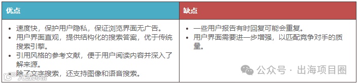 【基本信息】由前OpenAI员工创立,集成GPT、Claude、Llama等大模型,以对话式回答引擎著称,被誉为谷歌搜索的有力竞争者。其工作流程包括意图理解、网页索引提取、大模型阅读与结果生成,有效避免信息筛选负担[k]。