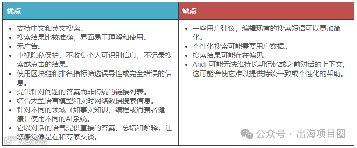 【基本信息】 Andi是由Y Combinator支持的新型AI搜索引擎,由Angela Hoover与Jed White联合创立。其核心优势在于通过生成式AI提供答案而非链接,旨在对抗传统搜索引擎中的广告与SEO干扰,尤其面向年轻用户群体[k]。