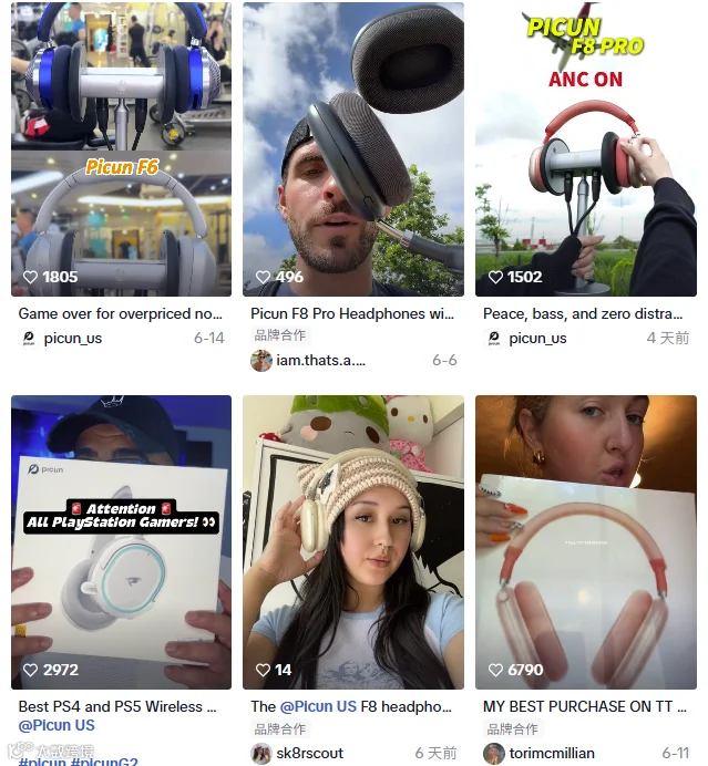 Picun作为新兴3C音频品牌,主要受众来源于年轻消费者,其在营销渠道上,侧重布局TikTok、YouTube,以丰富的内容展示产品优势。