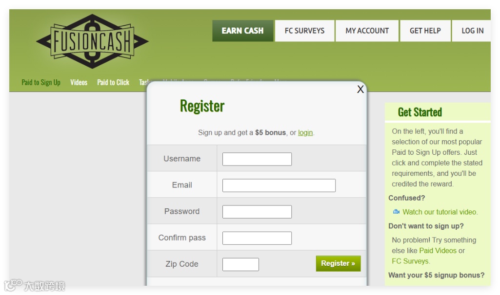 【平台简介】:FusionCash支持通过观看视频、完成调查、点击广告、听音乐及推荐好友等方式赚钱。新用户注册可获5美元奖金,并设有推荐奖励机制:推荐人验证邮箱奖励1美元,完成注册奖励2美元,成功提现再奖5美元[3]。