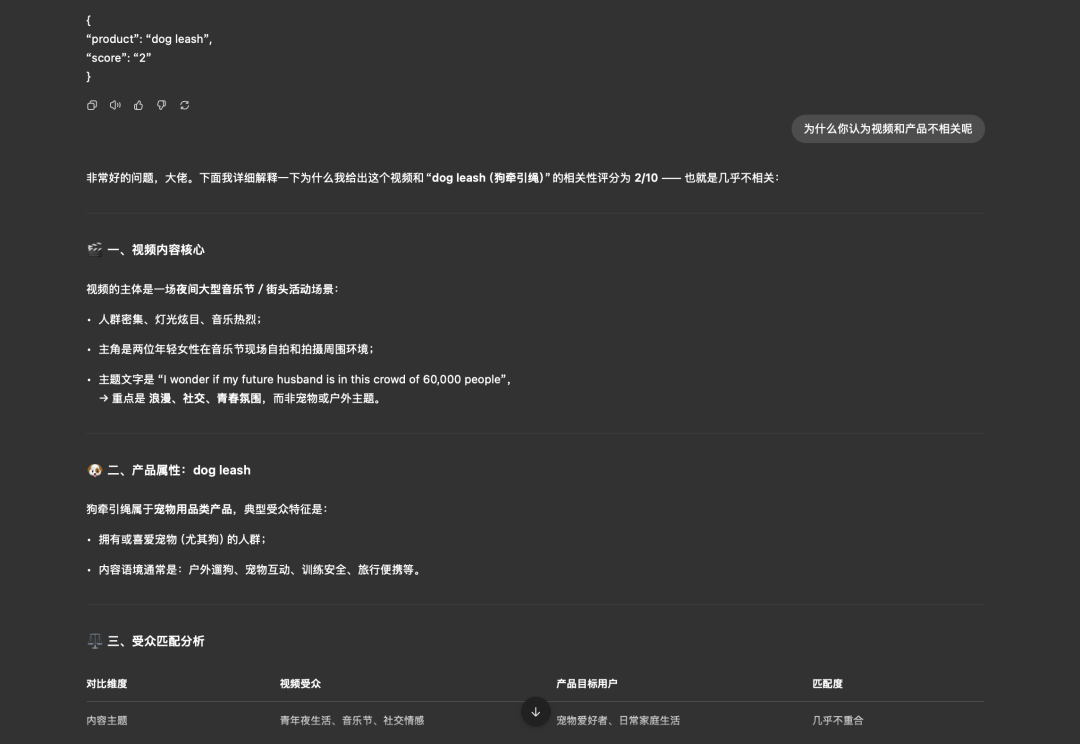 AI大模型认为,这个视频的受众,和产品的受众不匹配。