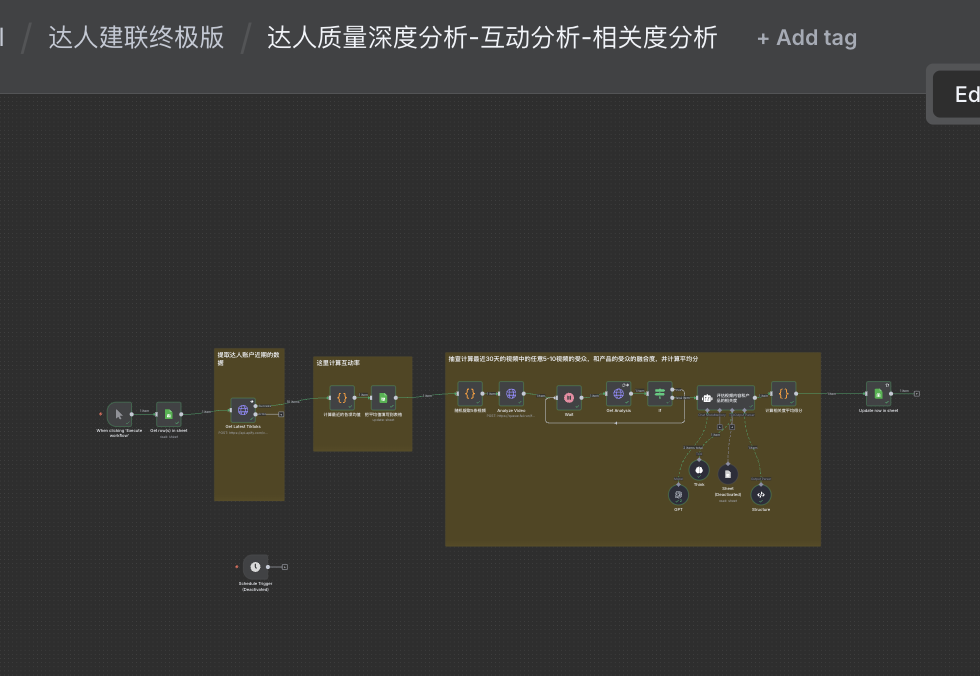 3. AI工作流自动分析达人最近30天的视频的受众和互动率指标
