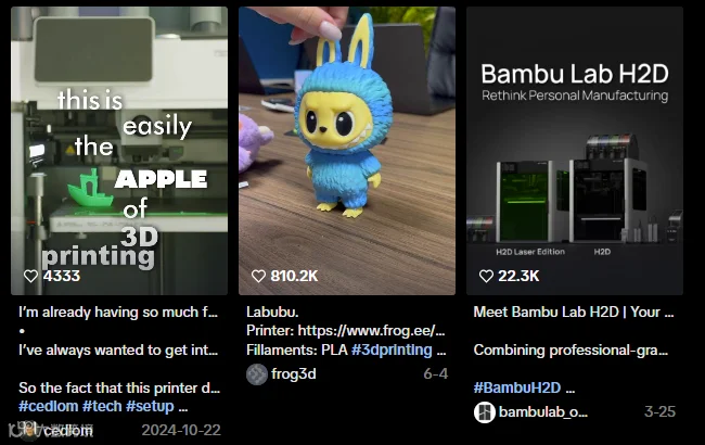 在TikTok、Facebook、Instagram、Reddit等社媒上创建官方账号,通过发布创新性打印成品、打印机使用教程、互动问答、举办打印比赛等优质内容,获取流量曝光。