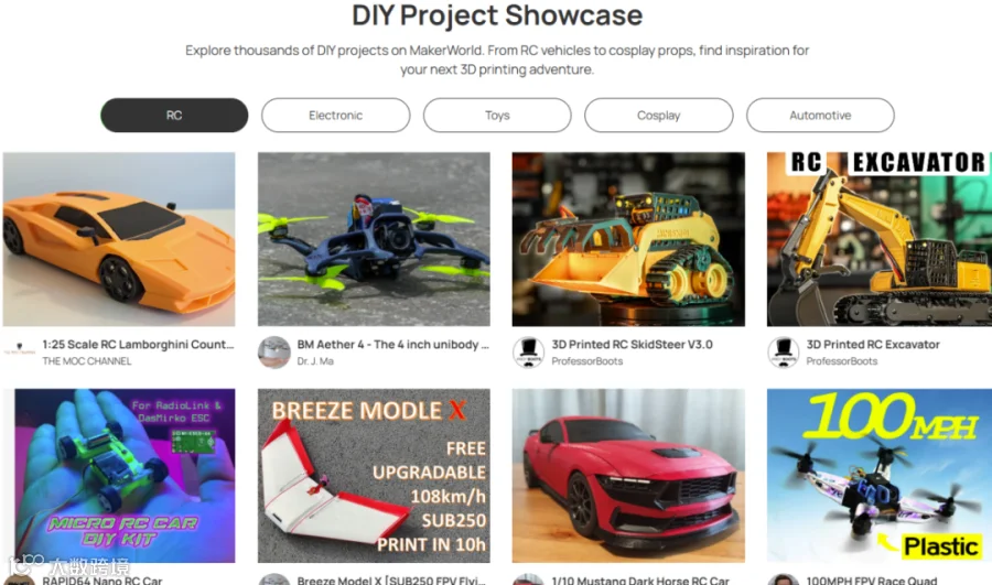 作为3D打印产品,实物效果更具有技术代表性,拓竹科技同步搭建Makerworld模型分享平台,可联合打印机、自研软件一起使用,消费者可下载已有模型打印成品,也可自主上传创意性模型,创新个人内容生态,通过参与更新、竞赛评比等,实现品牌与用户之间互动,满足DIY爱好者需求,提升产品体验与品牌口碑。