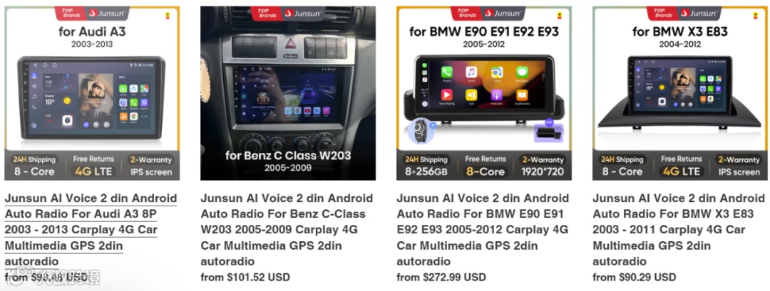 此外,军灿Junsun独立站内按照汽车品牌将车载中控、智能车载导航分类,用户可从品牌进入直接选择所需产品,清晰明了的购买体验,提高品牌购买转化率。