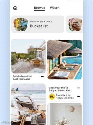 测试结束时,Travel AIGent会开启Pinterest产品推荐板,展示小规模家居改造创意。从那里,人们可以找到适合居家度假的完美物品,在家里重建他们最喜欢的户外空间。