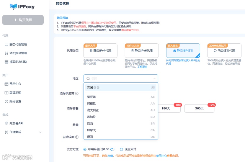 一个成熟的服务商,应该允许你根据运营场景灵活配置不同类型的住宅IP。