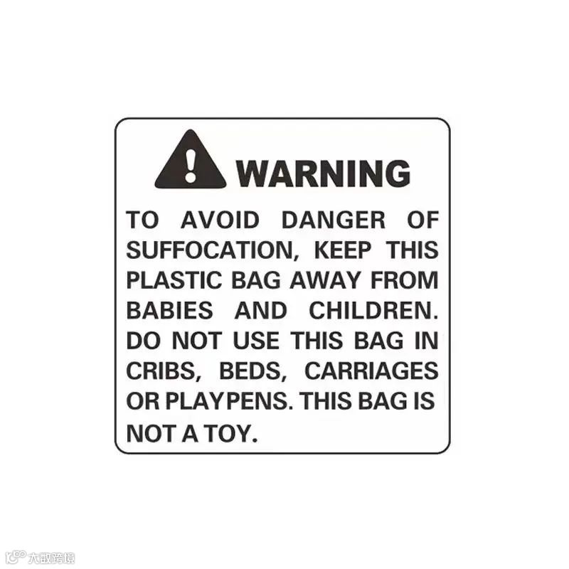 英文警告语:Warning: To avoid danger of suffocation, keep this plastic bag away from babies and children. Do not use this bag in cribs, beds, carriages or playpens. This bag is not a toy[k]。