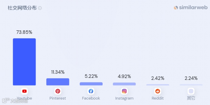 社媒营销、广告现在已经是品牌搭建过程中不可或缺的一部分,UR在YouTube、Instagram、Pinterest、TikTok等平台均有布局。不过显然在YouTube上经营最好,similarweb数据显示,UR网站社媒流量来源,YouTube独占了73.85%的份额。