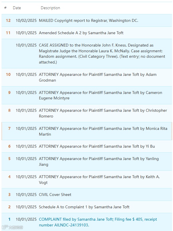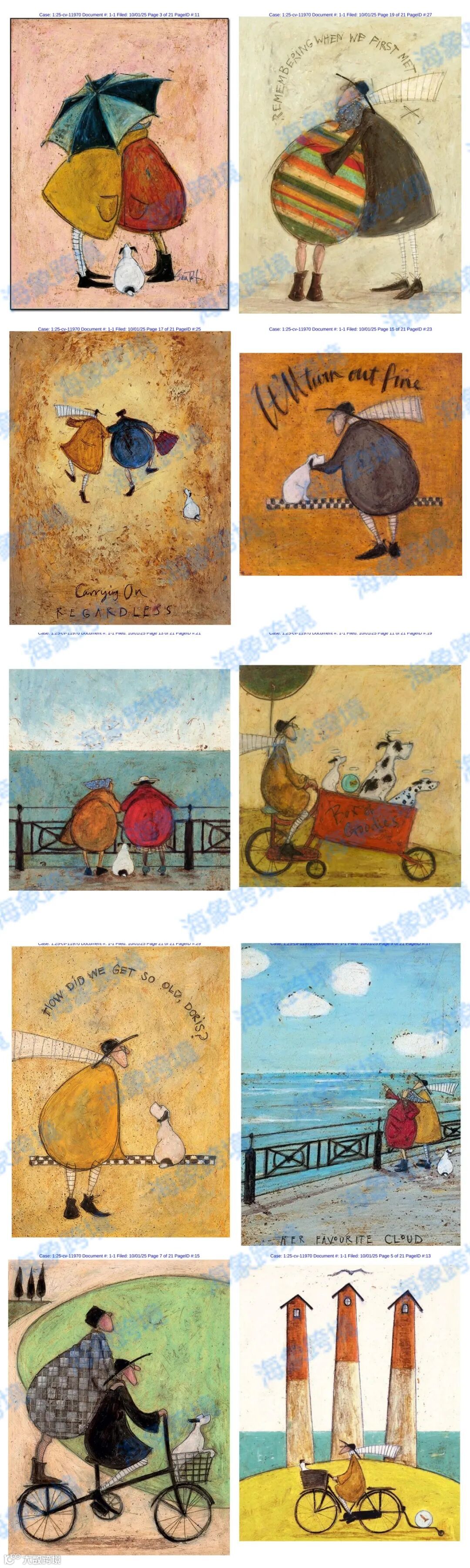 原告 Samantha Jane Toft 是一位全职艺术家,从事混合媒介创作,其风格充满绘画感和天真烂漫。她的作品已通过众多大型零售商等以印刷品、海报、陶瓷和纺织品的形式出售。