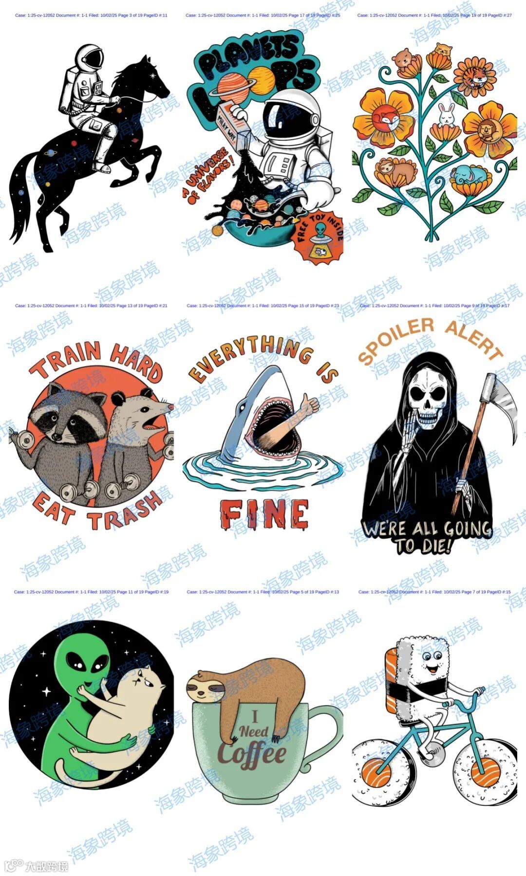 原告 Roberto Emilio Sanchez Pena 是一位数字插画家和平面设计师。他以 Coffee Man 的名义创作和销售以他的作品为特色的产品。他的艺术风格充满乐趣、轻松愉快且幽默风趣,经常运用鲜艳的色彩和受流行文化、自然、动物和食物启发的主题。
