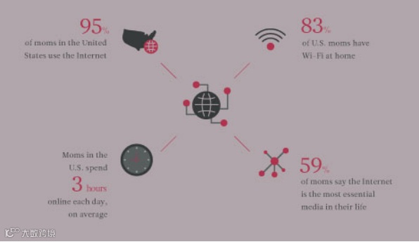 另外,需要注意到的是,美国妈妈们非常精通互联网并高度参与社交媒体,英敏特针对妈妈们的营销研究显示,超过七成的妈妈表示她们每天都会访问 Facebook。社交媒体是妈妈们的联系点,超过一半的人表示她们使用社交平台与其他妈妈联系。