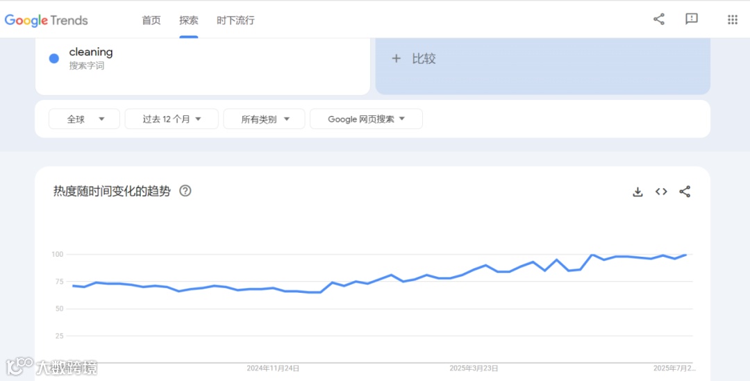 不仅如此,从搜索趋势来看,用户对清洁话题的关注度也持续上升。据Google Trends数据显示,“cleaning”在过去一年里全球搜索热度维持在65-100之间,2025 年上半年更是稳居高位,显示出清洁类目是长期需求。背后映射出消费者越发重视生活空间的整洁度,对清洁产品的需求攀升,追求高品质、高效能清洁体验的消费趋势愈发显著。