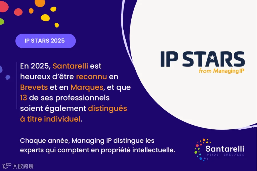 近日,国际权威知识产权媒体《知识产权管理》(Managing IP)正式发布“IP STARS 2025”年度榜单。Santarelli 凭借卓越的的专业实力,在商标与专利领域双双跻身领先梯队。