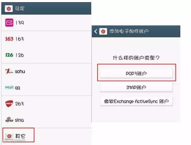 - 选择“其他邮箱”或“POP3/IMAP”[k]。
