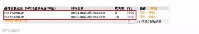 - 设置MX记录指向:mx01.mail.alibaba.com(优先级5)和mx02.mail.alibaba.com(优先级10)[k]。