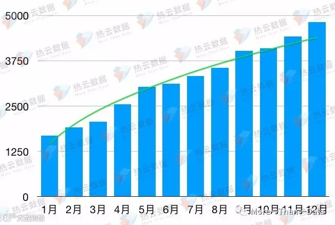 投放效果广告的产品数量逐月增加,到了12月份有将近5000款产品买量,买量市场已经一片红海,竞争十分激烈,主流的广告平台,传奇类产品和某些重度类型游戏一个iOS的单用户CPA成本甚至超过了300元人民币,每月买量产品数量趋势图如下:
