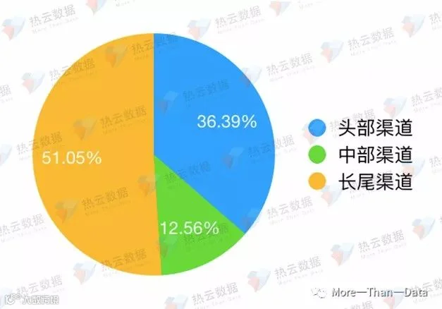 基于热云数据TrackingIO对接的400+渠道和广告主自定义的超过2000家渠道的数据,头部10家渠道贡献了超过36.39%的激活量,中间54家渠道贡献了12.56%的激活,而超过2000家长尾渠道贡献了剩下的51%的激活量,头部渠道的竞争始终是最激烈的。