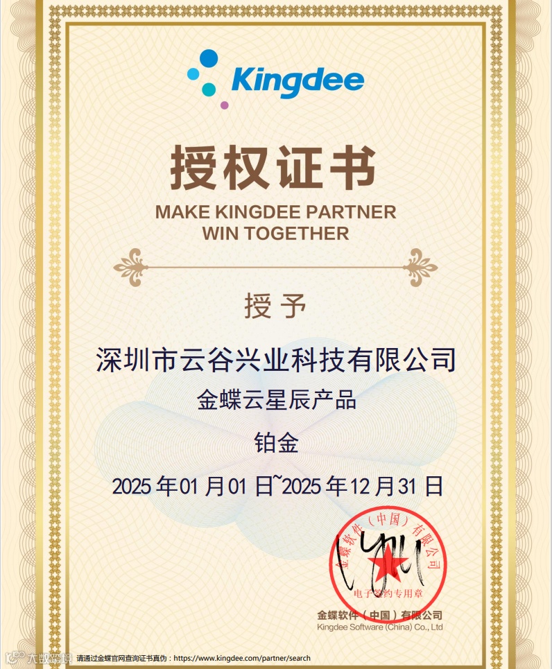 金蝶云星辰授权证书