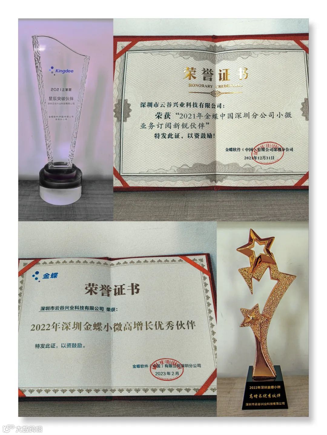 公司获得证书和奖杯: