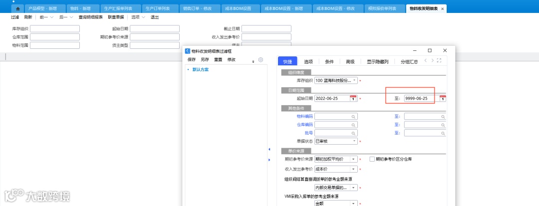1、物料收发明细表的过滤截止日期录入为9999年,再进行过滤,这样能过滤出当前日期以后做的出入库单据,再跟即时库存进行对比;
