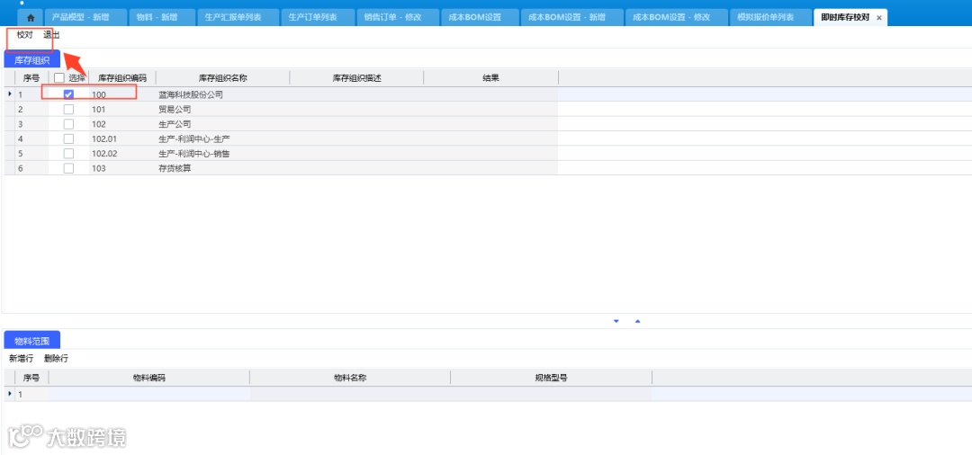2、如果步骤一过滤的结存数还是对不上,做一下即时库存校对;