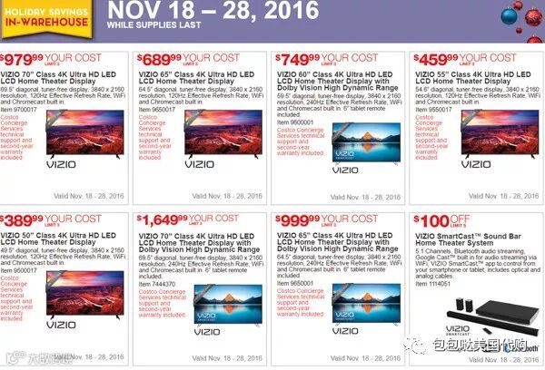 大宗百货必逛超市,在黑五当日促销的产品大多以电子产品为准,HP、DELL等品牌笔记本电脑直降65-250美金,Nikon5300直降250美金,吸尘器、冰箱、电视、搅拌机、按摩椅等家电产品参与黑五活动。Costco平日的价格就十分实惠,黑五更是让人期待满满。