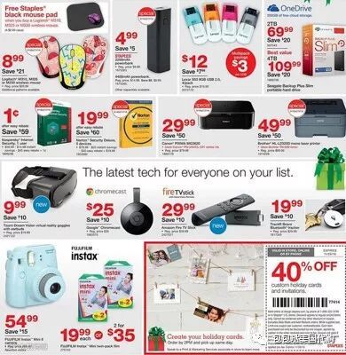 史泰博公司是一家大型的办公用品连锁店,在全世界26个国家拥有超过2000家商店。从目前黑五公布的海报来看,主要的优惠还是集中于电子类产品:电脑、打印机、显示器,传真机、U盘等折扣较大。如果想购买打印机的话,Staples的价格更为合适。