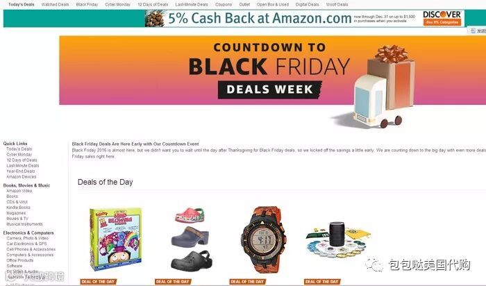 美国黑五第一网上抢购营地:亚马逊!在美国黑五抢亚马逊跟在国内双十一抢淘宝一样一样的,好多东西直接两三折,尤其适合囤厨房用品、母婴用品和家用电器。